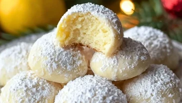 These almond cookies are a true celebration of simplicity and elegance. Crisp on the edges with a soft, slightly chewy center, each cookie is generously topped with slivered almonds and a delicate dusting of powdered sugar. They melt in your mouth while offering a toasty nuttiness from the almonds and buttery richness in every bite. Whether enjoyed with a warm cup of tea or served as a charming after-dinner treat, these cookies always manage to steal the show.