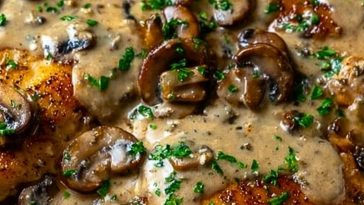 • Chicken and Mushroom Skillet in a Creamy Asiago and Mustard Sauce