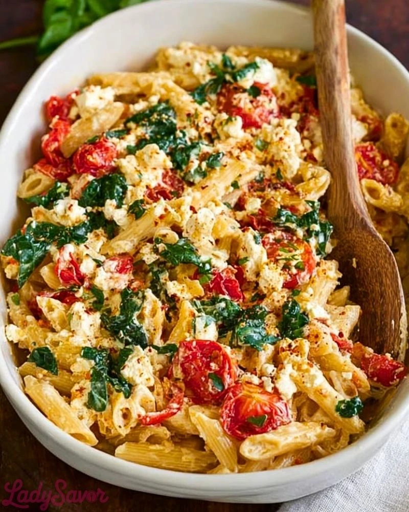 It’s also incredibly satisfying—the creamy feta balances perfectly with the sweetness of roasted tomatoes, while the pasta makes it hearty enough to stand on its own.