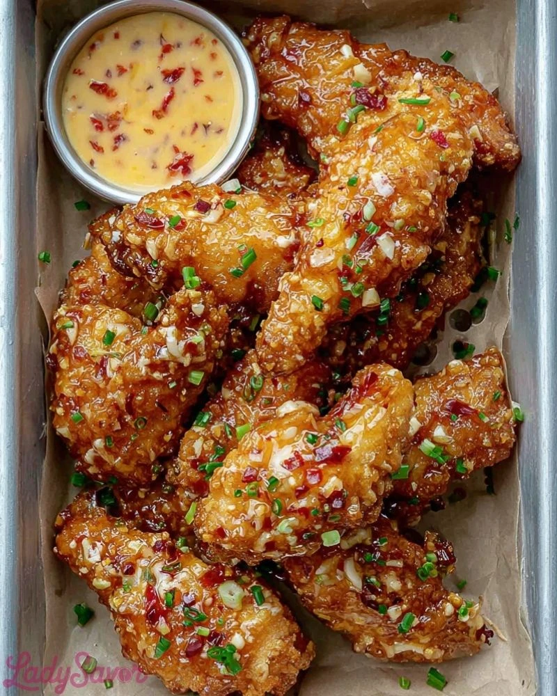 Before you begin, pat your chicken dry—this helps the coating stick better. Marinate the tenders briefly in buttermilk or seasoned milk for extra juiciness. When coating, press the flour mix firmly onto the chicken for that signature crunch. If frying in batches, don’t overcrowd the pan; it drops the oil temperature and results in soggy pieces. After frying, place each piece on a rack—not paper towels—so the bottom doesn’t get soggy. For the sauce, mix thoroughly until smooth and creamy. You can adjust spice by adding more or less chili sauce. Taste as you go to get the balance just right.