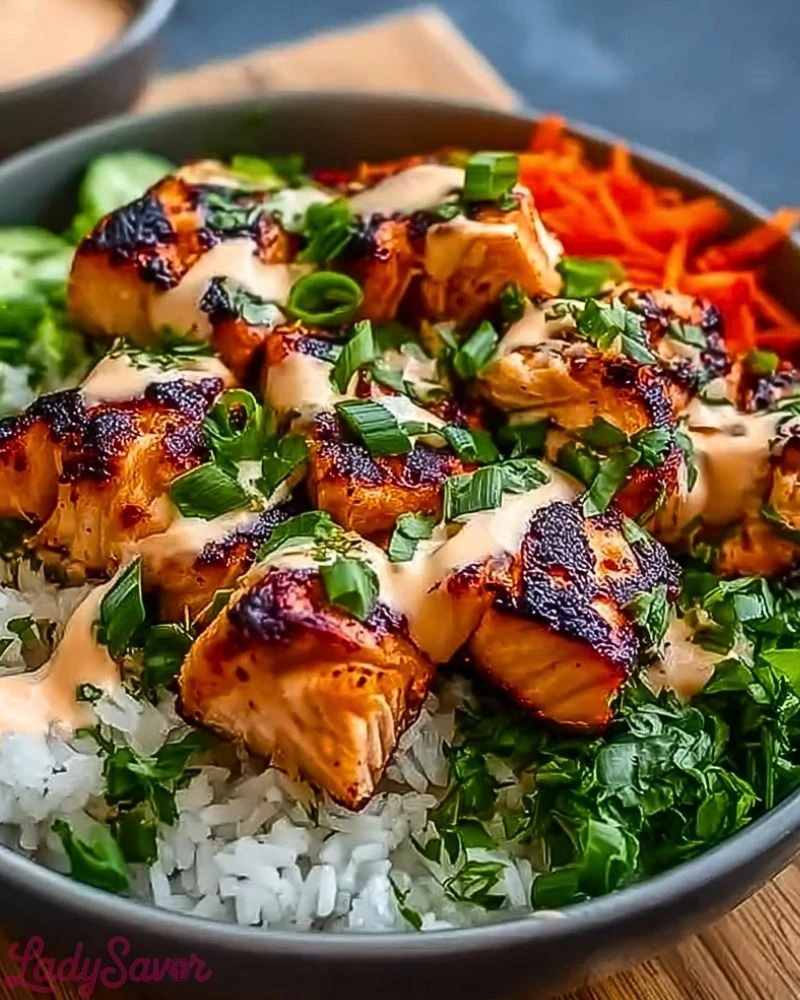 What I love most is how customizable it is. Whether I’m loading it up with fresh veggies or keeping it simple with just rice and salmon, it always hits the spot. The contrast of textures and flavors—crispy edges, tender fish, and that rich drizzle—makes every bite satisfying.