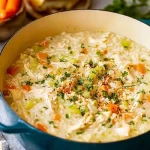 This Best Crack Chicken Rice Soup is the ultimate cozy meal—rich, creamy, and packed with savory shredded chicken, smoky bacon, tender rice, and melty cheese. Whether you’re looking for a quick dinner idea, hearty lunch, or comfort food for a chilly night, this easy recipe delivers big flavor in every bite. Great for weeknight meals, family gatherings, or when you need healthy-ish comfort with pantry ingredients.
