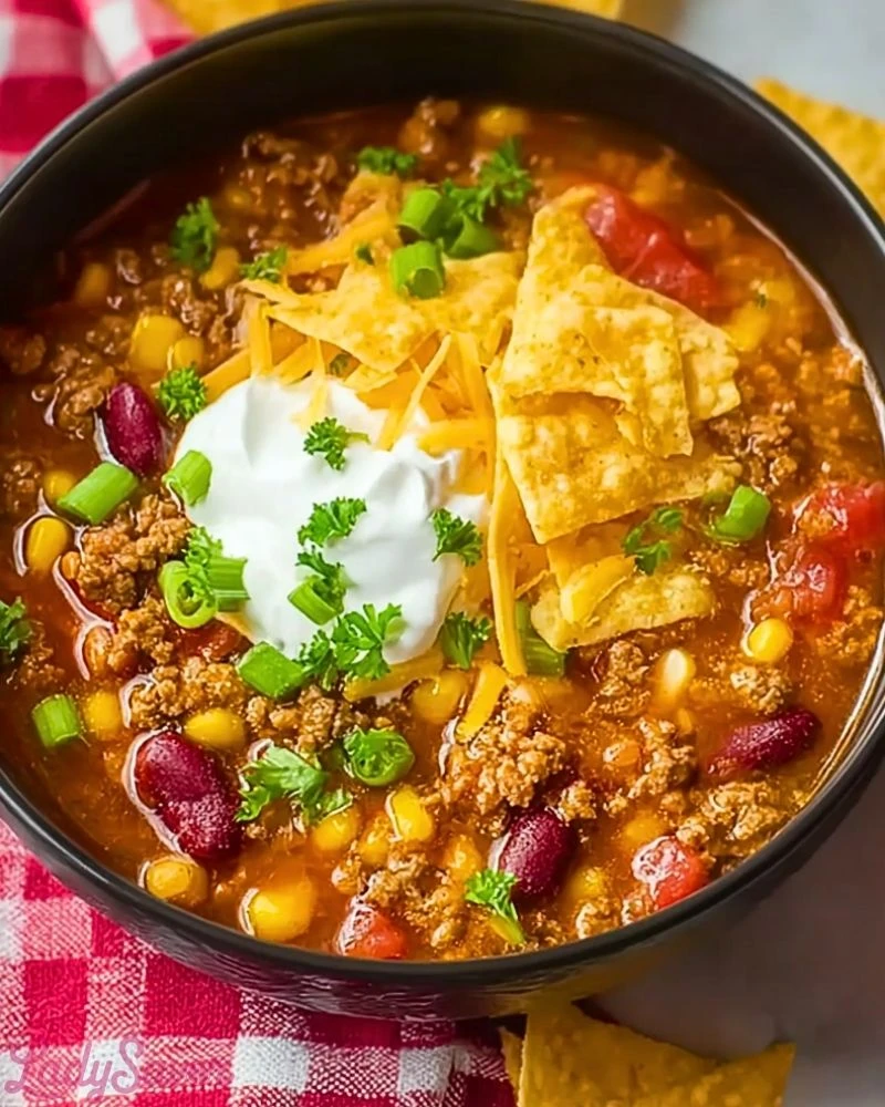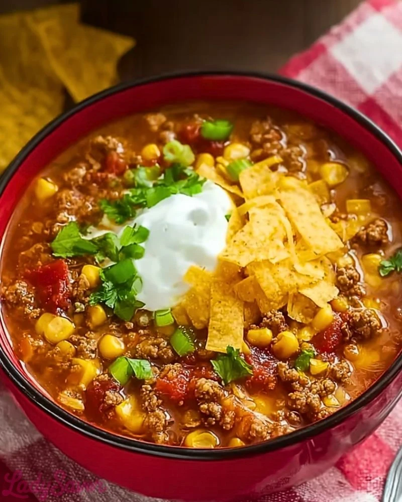 Hearty, comforting, and bursting with bold Tex-Mex flavors, this Crockpot Ground Beef Taco Soup is the ultimate one-pot meal for busy weeknights or lazy weekends. With minimal prep and maximum flavor, this soup brings together savory ground beef, plump beans, sweet corn, tangy tomatoes, and warm taco seasoning into one rich, soul-satisfying bowl. Topped with shredded cheese, sour cream, and crunchy tortilla strips, every bite is a fiesta of textures and taste.