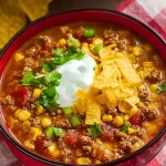 Hearty, comforting, and bursting with bold Tex-Mex flavors, this Crockpot Ground Beef Taco Soup is the ultimate one-pot meal for busy weeknights or lazy weekends. With minimal prep and maximum flavor, this soup brings together savory ground beef, plump beans, sweet corn, tangy tomatoes, and warm taco seasoning into one rich, soul-satisfying bowl. Topped with shredded cheese, sour cream, and crunchy tortilla strips, every bite is a fiesta of textures and taste.