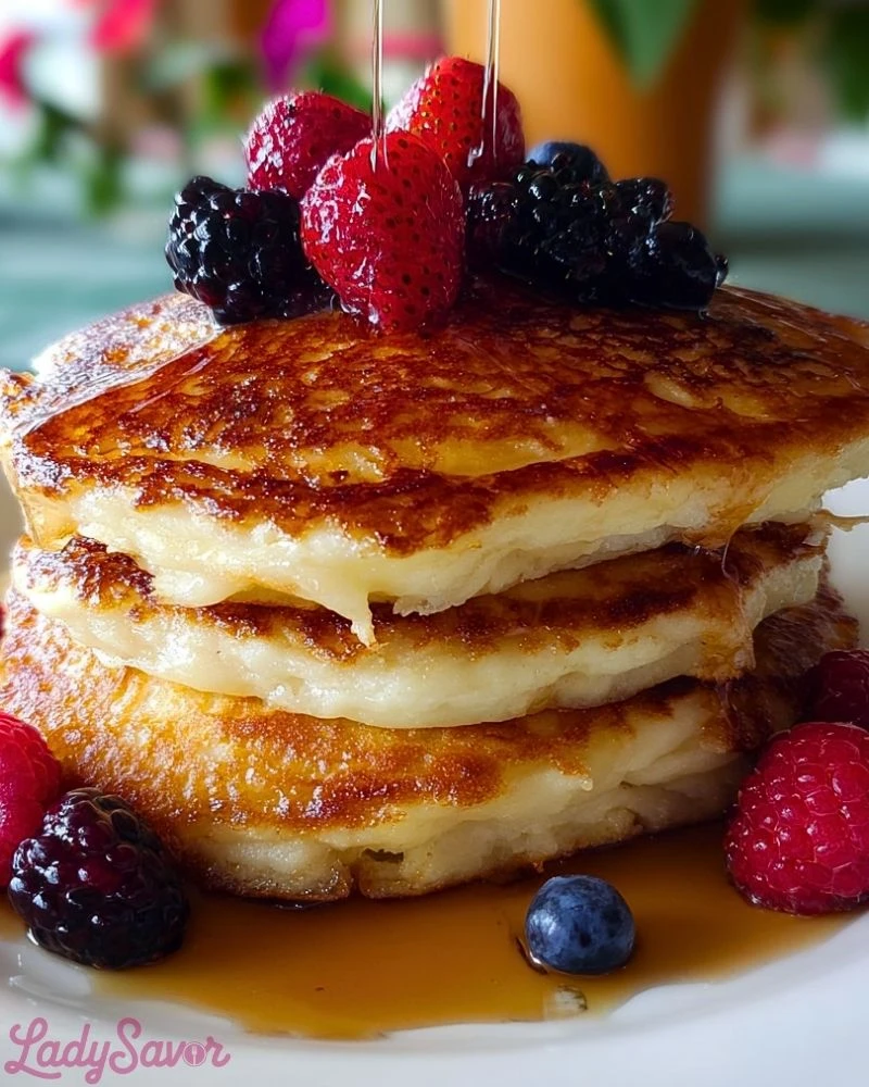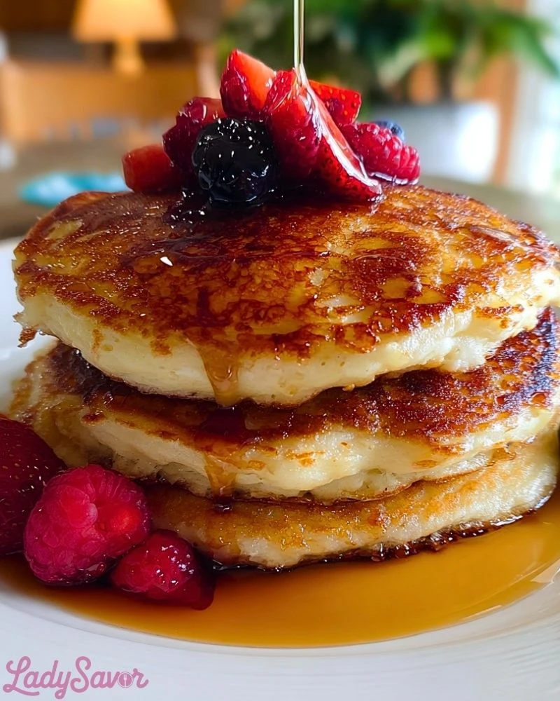 What sets this recipe apart is the perfect balance of moisture and lift. The result is pancakes that are thick yet tender, rich but not heavy. Serve them with fresh berries, a pat of butter, and a generous drizzle of maple syrup, and you’ll have the ultimate breakfast indulgence right at home.