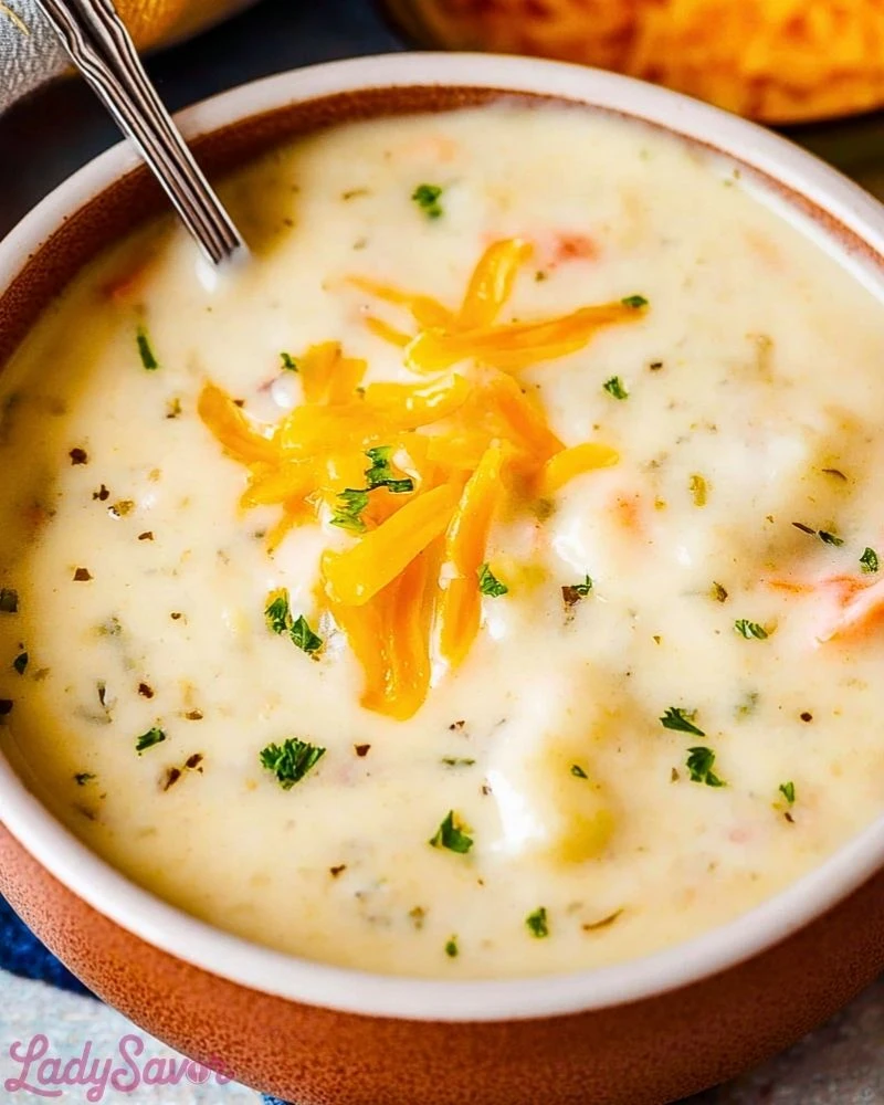 Ladle the soup into bowls and top with shredded cheese, green onions, parsley, and crispy bacon if desired. Serve warm and enjoy every comforting bite.