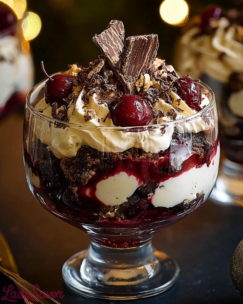 - Large Glass Trifle Bowl or Dessert Glasses: Essential for showing off the beautiful layers. Transparent glass brings out the festive red cherries, white cream, and deep chocolate.