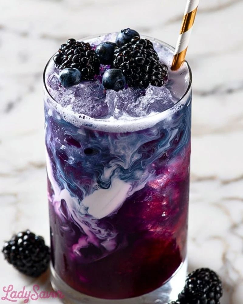 A striking swirl of deep purple berries and creamy soda comes together in this Blackout Berry Dirty Soda, a drink that looks as dramatic as it tastes. Each sip blends the sweet-tart punch of blackberries and blueberries with a smooth, velvety finish, creating a refreshing contrast that’s both bold and comforting.
