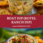 Looking for a bold, creamy, and crowd-pleasing appetizer that takes less than 10 minutes to make? **Boat Dip (Rotel Ranch Dip)** is your ultimate answer. This easy, no-cook dip is loaded with sour cream, ranch seasoning, shredded cheese, and zesty Rotel tomatoes—making it perfect for quick breakfast spreads, party trays, lazy lake days, or last-minute dinner ideas. Whether you’re feeding a crowd or just need a flavor-packed snack, this easy recipe hits all the right notes.