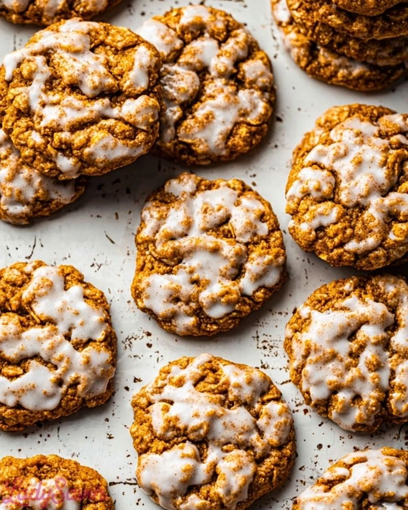 Warm, chewy, and drizzled in a sweet glaze, these Brown Butter Pumpkin Oatmeal Cookies are the ultimate fall treat. The deep, nutty flavor of browned butter enhances the comforting sweetness of pumpkin and spices, while hearty oats bring that classic chewy texture everyone loves. This easy recipe is ideal for cozy nights in, fall parties, or holiday cookie trays. Whether you’re looking for a quick breakfast idea, easy dessert recipe, or seasonal food idea, these cookies hit all the marks with rich flavor, a soft center, and a crisp glaze. They’re make-ahead friendly and freezer-approved—what more could you want?