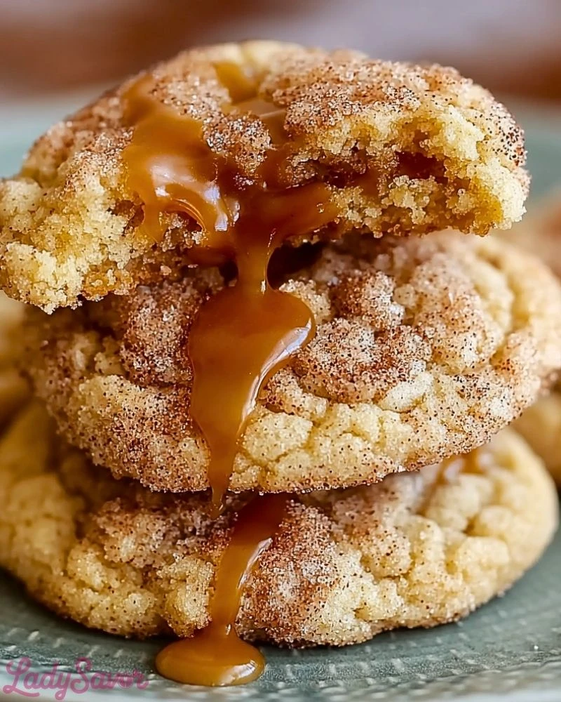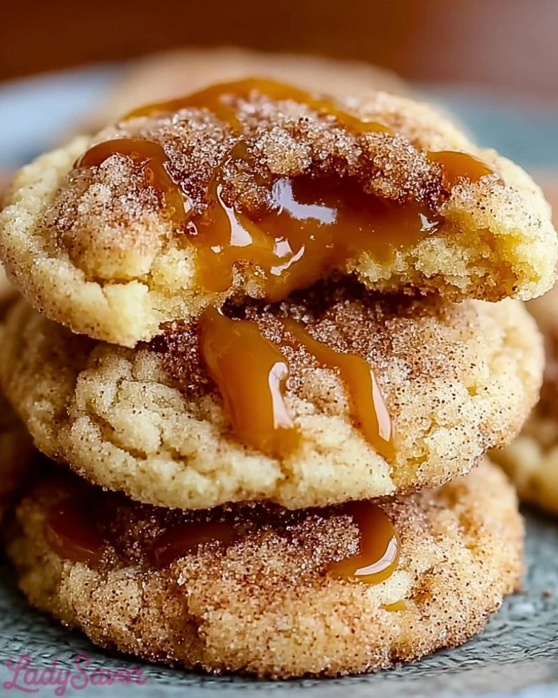 These cookies strike the perfect balance between indulgent and comforting. They’re soft and chewy with slightly crisp edges, filled with gooey caramel that stays soft even after cooling. The cinnamon-sugar coating gives them a snickerdoodle-like crunch, and the rich brown sugar makes each bite deeply flavorful.