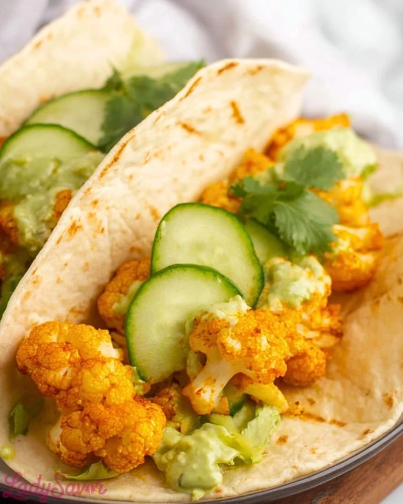 Store any leftover roasted cauliflower in an airtight container in the refrigerator for up to 3 days. To reheat, use an oven or air fryer for best texture — avoid the microwave as it can make the cauliflower soggy. Keep tortillas and toppings separate until ready to serve. Wrapped leftovers can be stored for up to 1 day but are best fresh.