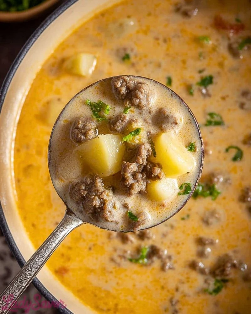 This soup is the ultimate one-pot wonder. The creamy broth is packed with cheesy flavor that balances perfectly with the seasoned beef and the soft, comforting texture of cooked potatoes. It’s great for weeknights because it comes together quickly, and it’s also perfect for meal prep or freezing for later. Whether you’re cooking for a crowd or just want something soul-satisfying after a long day, this recipe delivers every single time.