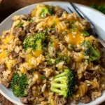 Looking for a cozy, one-pan dinner that’s fast, filling, and incredibly flavorful? This Cheesy Beef Broccoli and Rice is the ultimate comfort food—featuring tender ground beef, fluffy rice, crisp broccoli, and melty cheddar cheese. It’s perfect for busy weeknights, great as a leftover, and easy to customize. Whether you need a quick dinner idea, a family-friendly weeknight favorite, or a protein-packed comfort dish, this easy recipe checks all the boxes. Ideal for meal prep, budget meals, or whenever you’re craving something hearty and delicious!