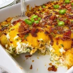 Once assembled, the casserole typically bakes for 35–45 minutes. During this time, the tater tots crisp up beautifully while the inside becomes hot, creamy, and perfectly blended. Allowing it to rest for a few minutes after baking helps everything set, making it easier to serve.