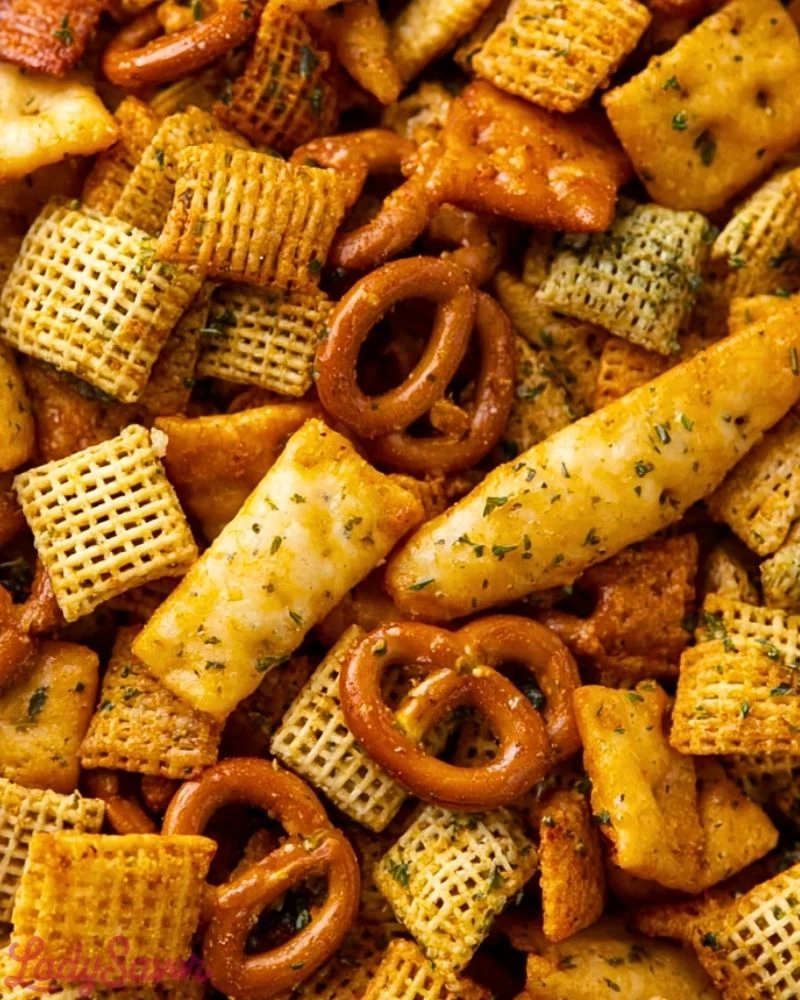 Now, it’s my go-to for movie nights, road trips, and casual gatherings. There’s something incredibly satisfying about the mix of textures—crispy cereal squares, crunchy pretzels, and those irresistible cheesy crackers—all coated in a bold ranch seasoning that keeps you reaching for more.