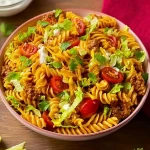 When I’m craving something fun, fast, and absolutely delicious for a weeknight dinner or potluck gathering, I turn to this Cheesy Taco Pasta Salad. It’s the perfect collision of two comfort food worlds: tacos and pasta. You get all the savory goodness of seasoned ground beef, the brightness of fresh veggies, the creaminess of cheese, and the satisfying bite of rotini pasta—each forkful packs a punch of flavor that keeps everyone coming back for seconds.