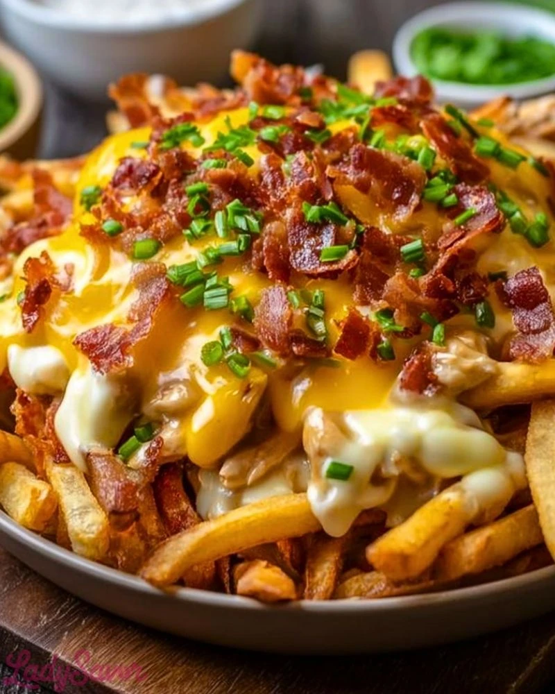 Chicken and Cheese Poutine is a soul-warming dish perfect for cozy nights in or a fun, indulgent meal with friends. Combining crispy fries, juicy chicken, creamy cheese, and savory gravy with crunchy bacon and fresh green onions creates an irresistible medley. Whether you follow the recipe to the letter or add your own spin, this dish never disappoints.