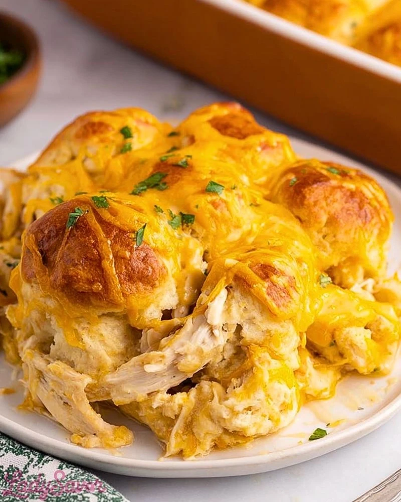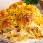 Creamy, cheesy, and irresistibly comforting — the Chicken Bubble Biscuit Casserole is the kind of dish that turns an ordinary dinner into a cozy, satisfying experience. Picture tender shreds of seasoned chicken nestled in a rich, savory sauce, all baked together with golden, fluffy biscuit bites that bubble up as they bake. Every spoonful is a dreamy bite of warmth, flavor, and cheesy bliss.