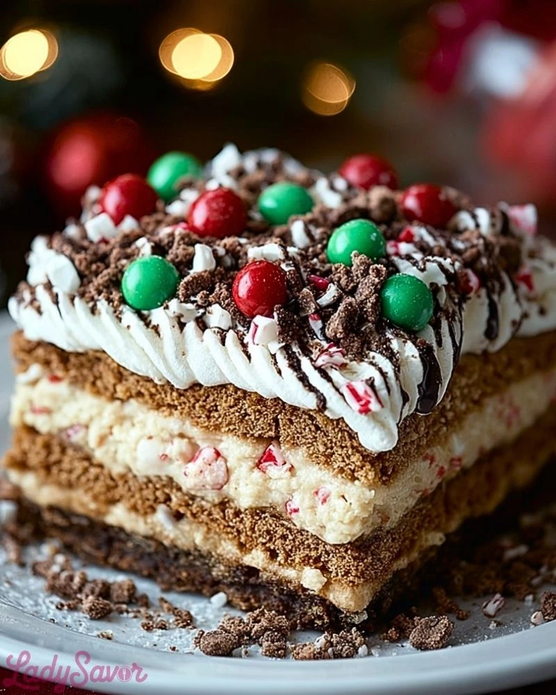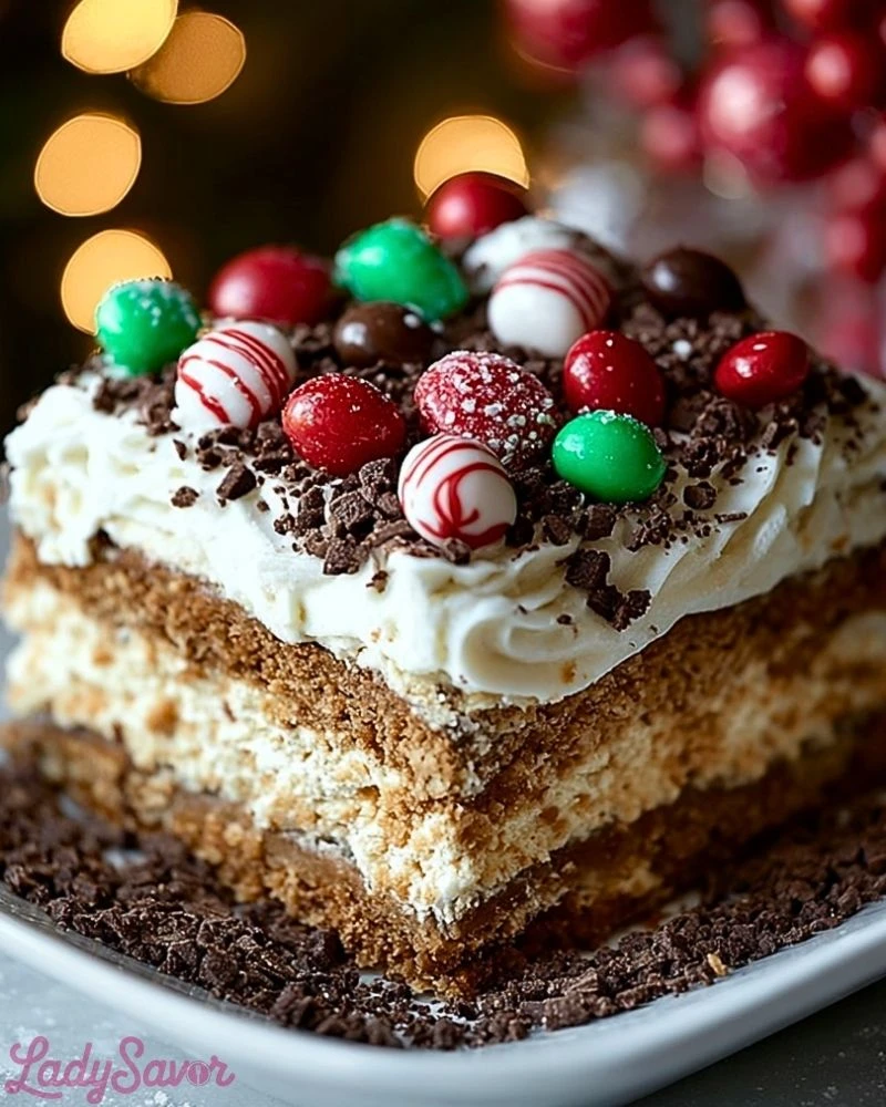 Keywords: Christmas dessert, no bake recipe, holiday treat, festive lasagna