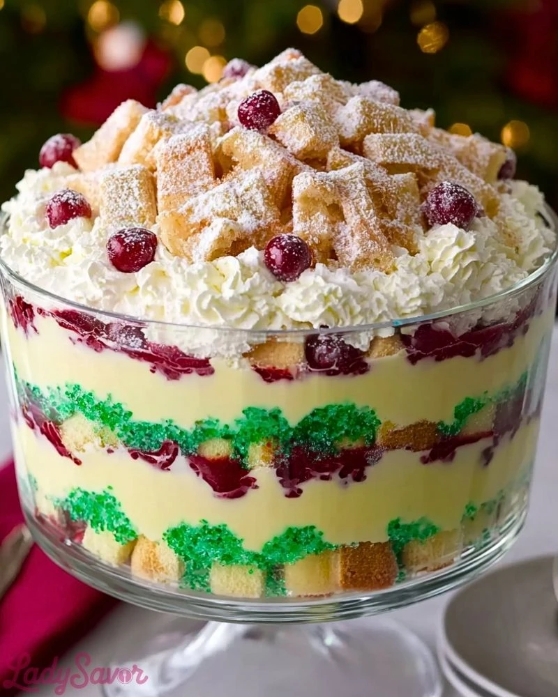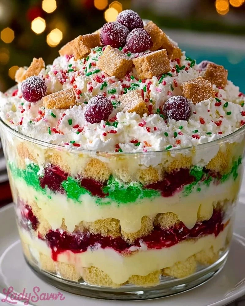 Perfect for family gatherings, potlucks, or a holiday movie night, this no-bake treat is not only beautiful but ridiculously easy to put together. Whether you’re a seasoned baker or a dessert beginner, this trifle delivers flavor and festivity without stress. Let’s unwrap this joyfully delicious dessert layer by layer!