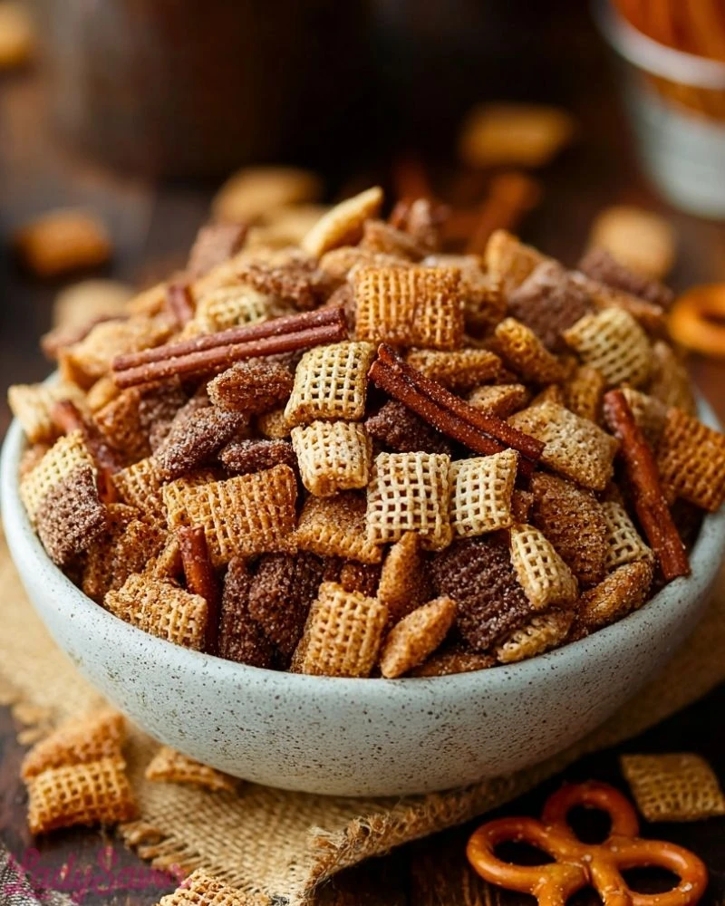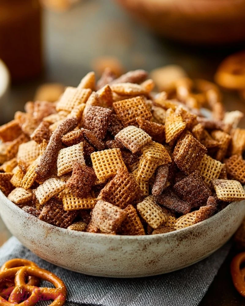 Not a fan of Rice or Corn Chex? Crispix is a great alternative with a similar crunch. Want to add a little extra flair? Toss in pretzel sticks or pecans before the final sugar coating. For a dairy-free version, swap the butter for a plant-based alternative and double-check that your cereal is vegan-friendly. If you like a little heat with your sweet, try adding a pinch of cayenne to the cinnamon-sugar blend for a spicy twist.