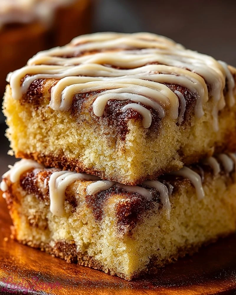 Cut into squares and serve warm or at room temperature. The texture is tender, the cinnamon is bold, and the glaze ties everything together like a bakery-quality treat.