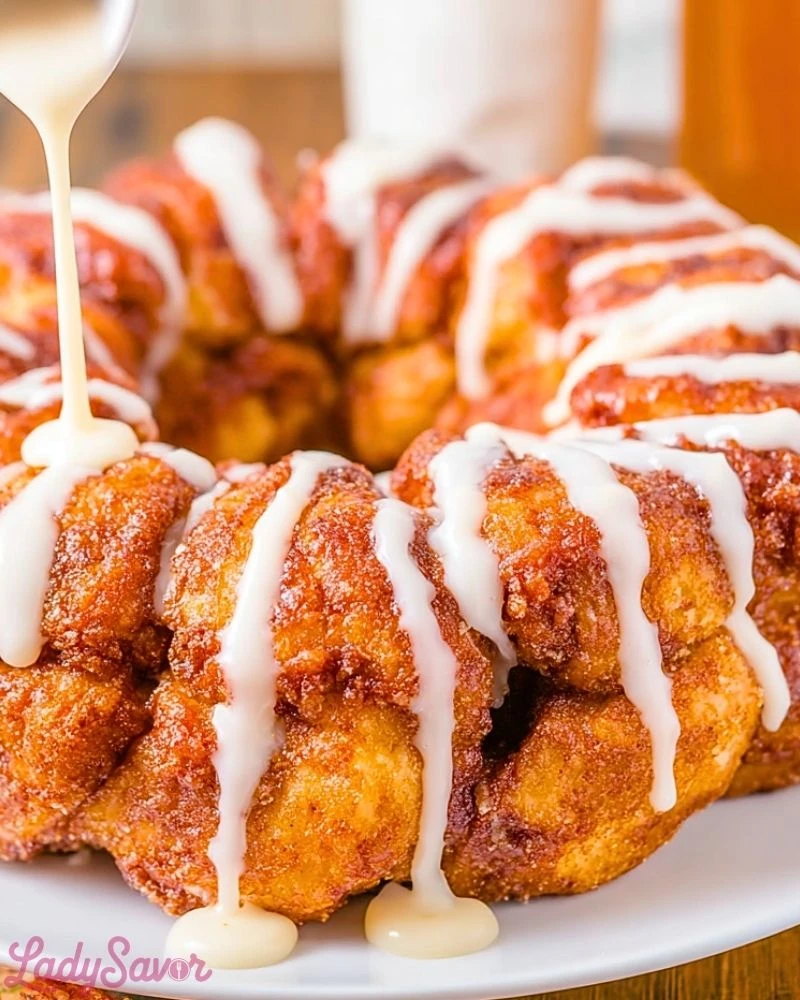 This recipe combines the cozy flavor of classic cinnamon rolls with the sticky-sweet, fun-to-eat structure of monkey bread. It’s made with canned cinnamon rolls, which makes it incredibly fast to prep—no waiting on dough to rise! The pieces bake up with golden edges and gooey centers, held together by melted butter, brown sugar, and cinnamon. The drizzle of icing at the end is the cherry on top. Whether you’re a beginner baker or just short on time, this recipe delivers maximum comfort with minimal effort.