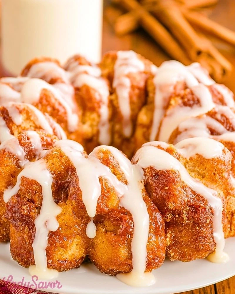 Warm the reserved icing slightly in the microwave and drizzle it over the top of the monkey bread. Serve warm and enjoy the gooey goodness!