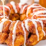 This recipe combines the cozy flavor of classic cinnamon rolls with the sticky-sweet, fun-to-eat structure of monkey bread. It’s made with canned cinnamon rolls, which makes it incredibly fast to prep—no waiting on dough to rise! The pieces bake up with golden edges and gooey centers, held together by melted butter, brown sugar, and cinnamon. The drizzle of icing at the end is the cherry on top. Whether you’re a beginner baker or just short on time, this recipe delivers maximum comfort with minimal effort.