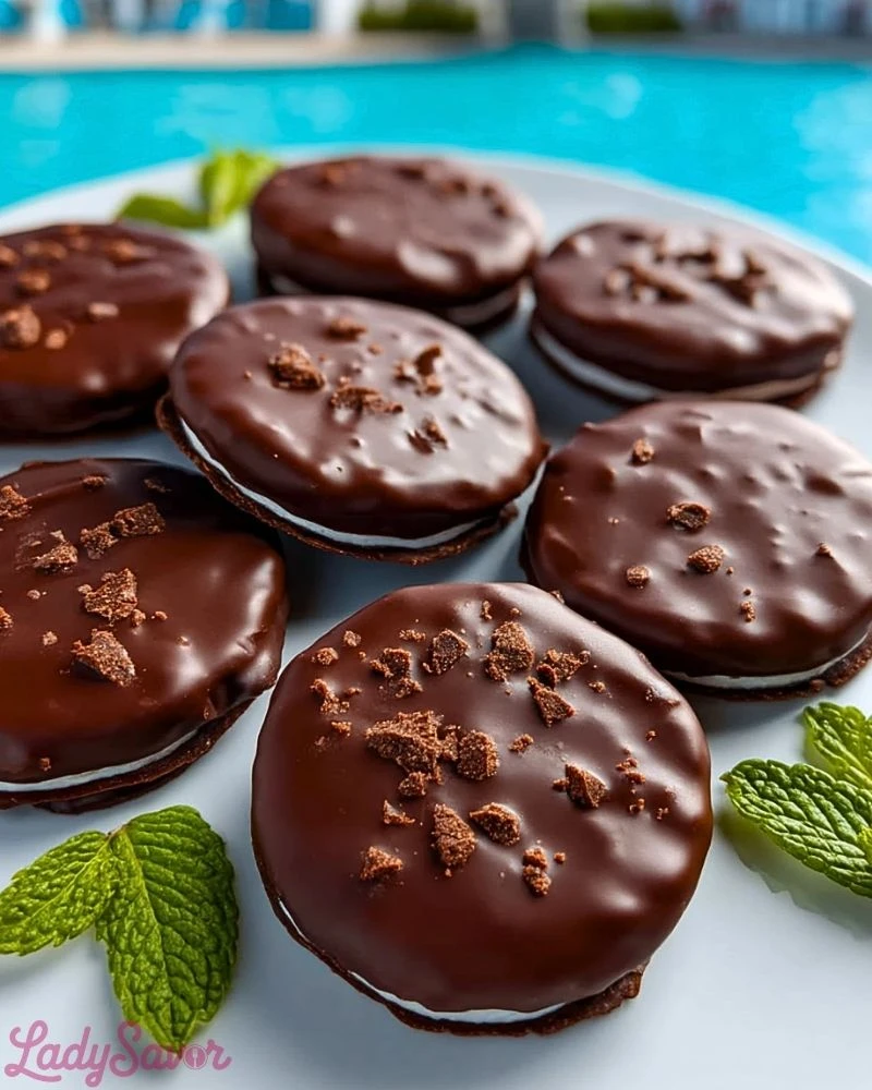 For best results, chill your dough before rolling it out—this prevents sticking and helps maintain the shape of your cookies. When cutting out the rounds, dip your cookie cutter in flour to avoid sticking. Don’t skip the cooling phase before dipping them in chocolate; warm cookies can melt the coating or lose their crispness. When melting chocolate, do so slowly over low heat or in 30-second intervals in the microwave to avoid seizing. And finally, place dipped cookies on parchment-lined trays and chill until the coating sets for that snappy Thin Mint finish.