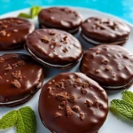 For best results, chill your dough before rolling it out—this prevents sticking and helps maintain the shape of your cookies. When cutting out the rounds, dip your cookie cutter in flour to avoid sticking. Don’t skip the cooling phase before dipping them in chocolate; warm cookies can melt the coating or lose their crispness. When melting chocolate, do so slowly over low heat or in 30-second intervals in the microwave to avoid seizing. And finally, place dipped cookies on parchment-lined trays and chill until the coating sets for that snappy Thin Mint finish.