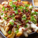 These fries aren’t just a snack—they’re an experience. They combine comfort food elements in one addictive dish: the crunch of well-seasoned fries, the creaminess of Cajun cheese sauce, and the smoky bite of bacon. Everything gets balanced with fresh green onions to cut the richness. It’s fast, fun, and flexible—perfect for both parties and low-effort dinners.