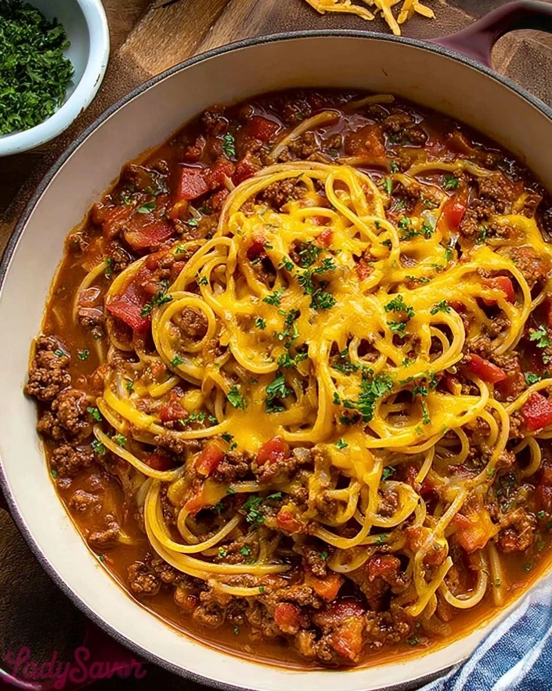 Cowboy Spaghetti is one of those dishes I turn to when I need something hearty, bold, and packed with flavor. It’s a little bit rustic, a little bit indulgent, and totally satisfying. I love how this recipe takes the classic comfort of spaghetti and kicks it up with smoky bacon, zesty tomatoes, cheddar cheese, and seasoned ground beef. It’s like spaghetti with a cowboy hat on—full of swagger and flavor.