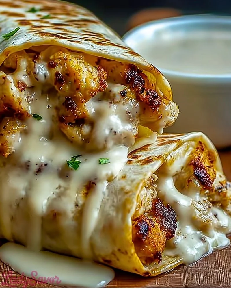This recipe brings together juicy, seasoned chicken and an indulgent homemade garlic cheese sauce in a way that makes every bite better than the last. The lightly toasted tortilla adds a subtle crisp to balance the creamy filling. Whether you’re looking for a new dinner idea or the ultimate late-night comfort snack, this wrap is destined to become a go-to favorite.