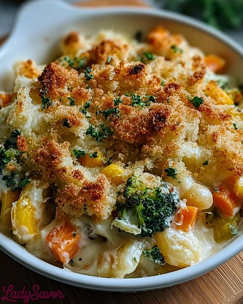 Start by steaming or blanching your vegetables until just tender — you don’t want them mushy since they’ll continue cooking in the oven. Use freshly shredded cheese instead of pre-shredded for a smoother melt and richer flavor. Taste your béchamel before combining it with the vegetables; seasoning here makes all the difference. Don’t skip the breadcrumb topping — it adds irresistible crunch. If you’re making this ahead, assemble everything except the breadcrumbs, then add them just before baking to maintain that crispy top layer.