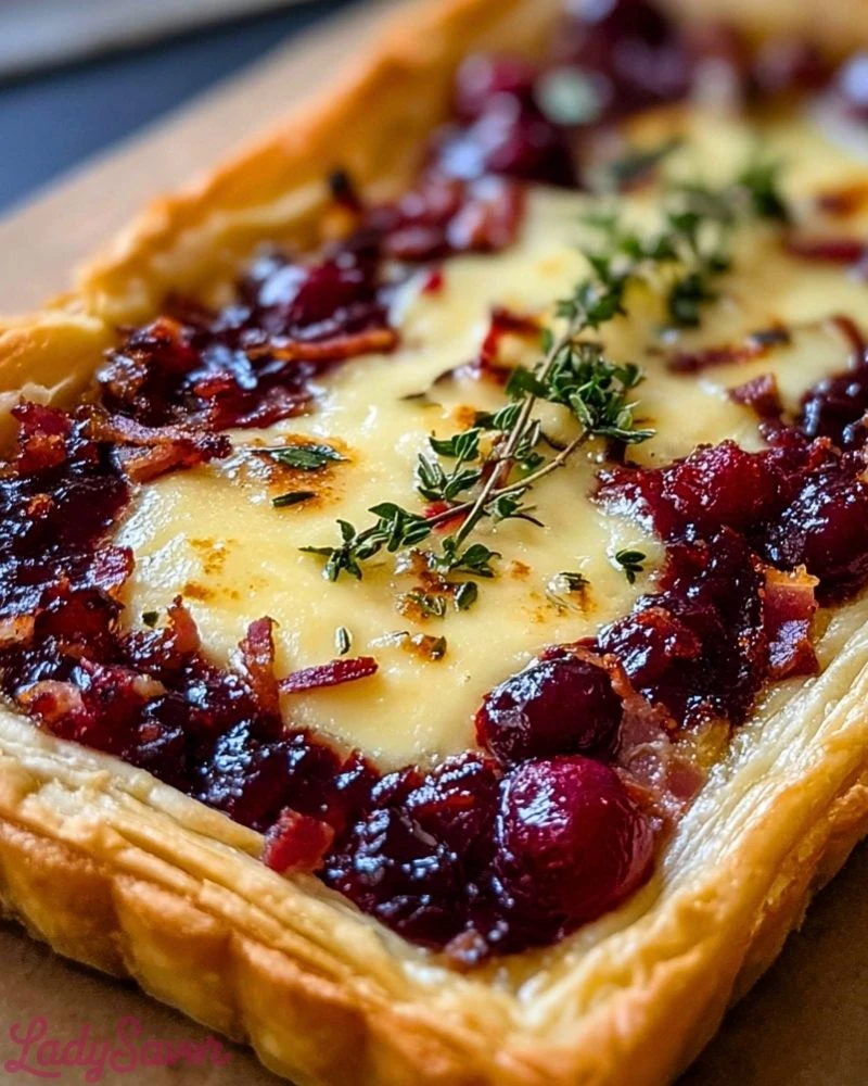 Keywords: holiday appetizer, cranberry brie tart, easy recipe, puff pastry, quick snack, food ideas, dinner ideas, breakfast ideas