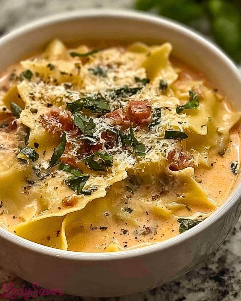 Imagine everything you love about lasagna—the tender pasta, creamy sauce, savory richness—transformed into a cozy bowl of soul-soothing comfort. Creamy Alfredo Lasagna Soup is where tradition meets indulgence. With velvety Alfredo broth hugging ribbons of lasagna noodles and bits of seasoned tomato and fresh basil, this dish delivers big flavors with a spoon. It’s essentially lasagna in its most comforting, slurpable form.