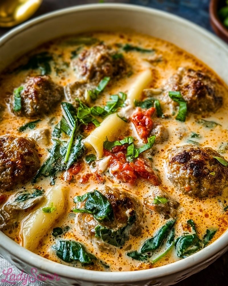 Craving a cozy, satisfying dinner that’s easy to make and loaded with flavor? This **Creamy Italian Meatball Soup** delivers everything you want in one bowl. Tender meatballs, creamy tomato broth, fresh spinach, and perfectly cooked pasta make this soup a standout. It’s ideal for quick dinners, comforting lunches, or batch cooking for the week. Whether you’re after **easy dinner ideas**, **healthy comfort food**, or a hearty **food idea for the whole family**, this creamy soup has you covered.