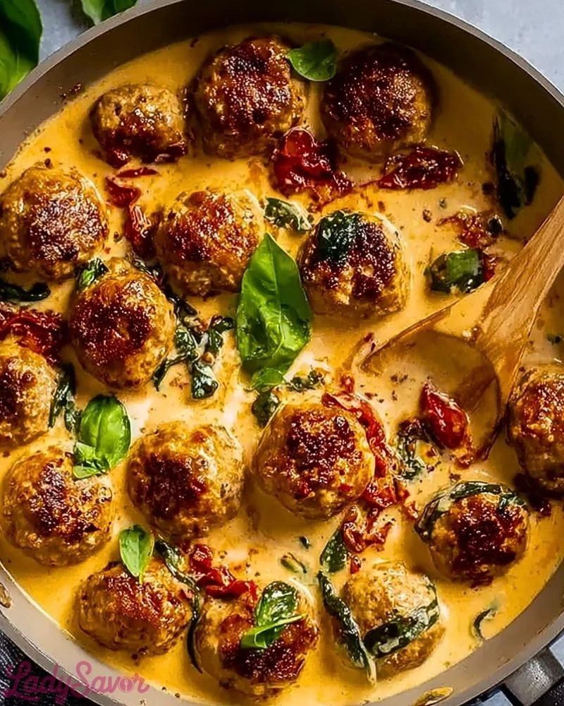 Use chilled ground chicken for easier handling—it’s less sticky and forms cleaner meatballs. Lightly oil your hands when rolling to prevent the mixture from sticking. Browning the meatballs before simmering them in the sauce locks in flavor and keeps them juicy. When making the sauce, let the garlic and sun-dried tomatoes cook low and slow to release their full aroma. Add the cream slowly and whisk gently to prevent curdling. Lastly, don’t overcrowd the skillet—work in batches if needed to ensure even cooking.