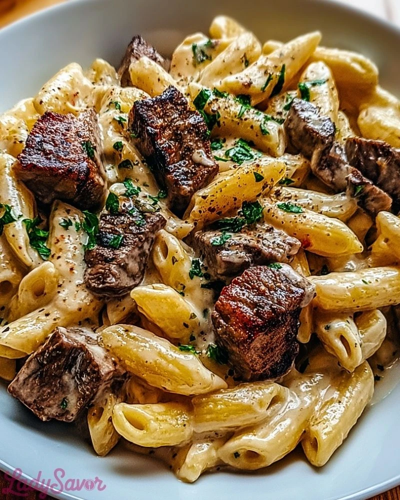 - Combines the richness of steak with the smooth creaminess of a pasta sauce