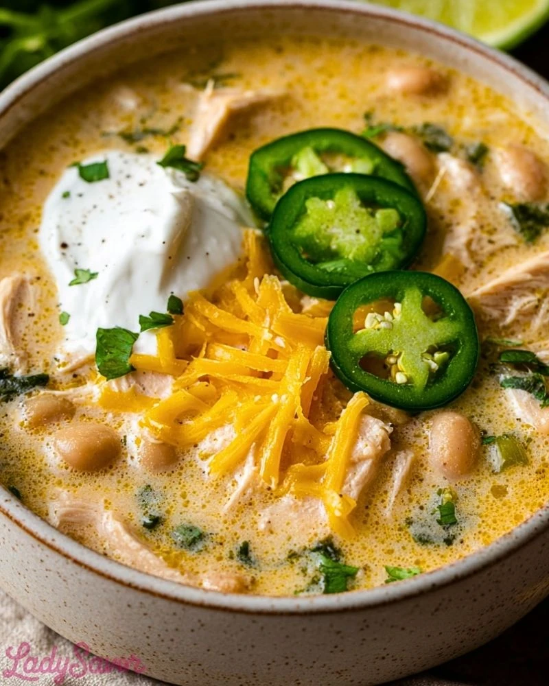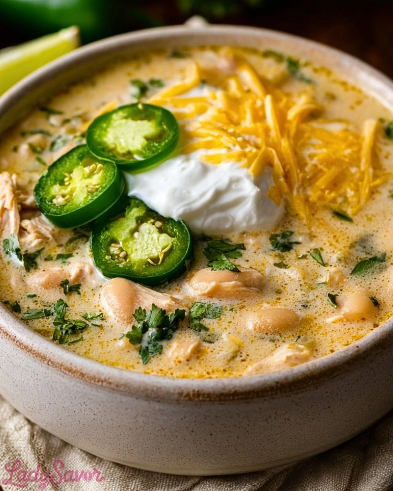 Craving a quick dinner that feels like a warm hug? This *Creamy White Chicken Chili* is the ultimate comfort food that combines tender chicken, hearty white beans, and sweet corn in a velvety, spiced broth. Rich with cream cheese and heavy cream, it’s a crowd-pleaser that makes weeknight cooking feel like a treat. Whether you’re exploring dinner ideas, hunting for an easy recipe, or needing food ideas for meal prep, this chili checks every box—from satisfying to simple, freezer-friendly to flavorful. It’s the perfect addition to your healthy snack list or dinner rotation!