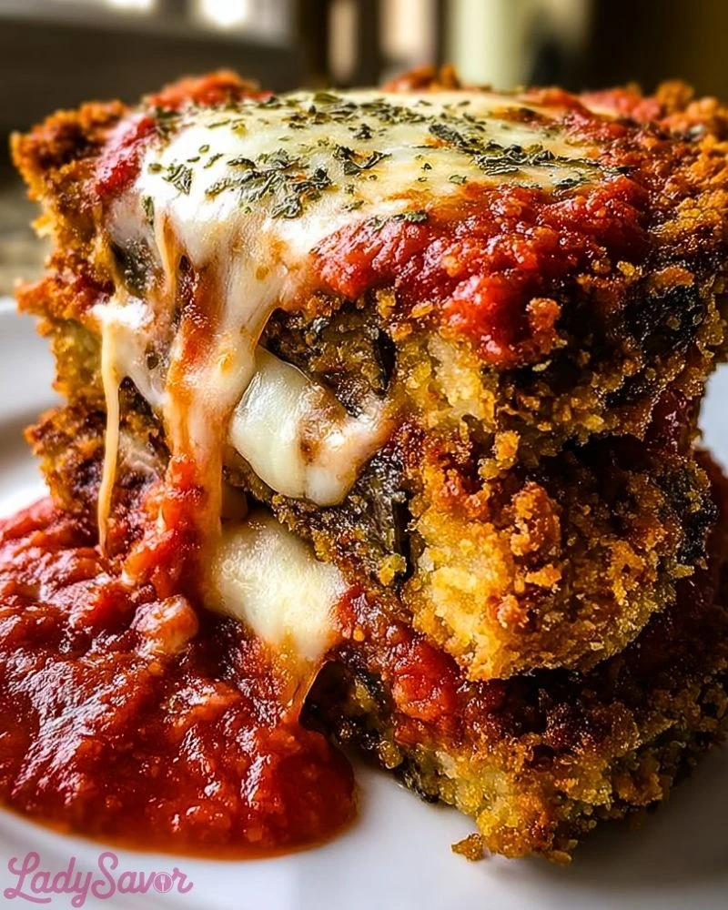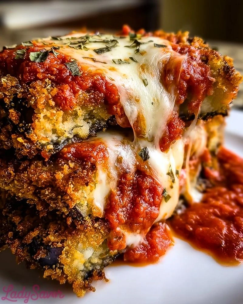 - Marinara sauce (homemade or store-bought): Adds a rich, tangy layer between the eggplant slices.