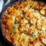 Let the gratin sit for at least 10–15 minutes after baking. This allows the creamy layers to settle and makes slicing much easier. Top with fresh thyme sprigs before serving for a final aromatic touch.