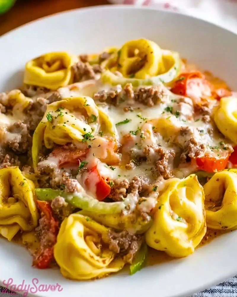 Looking for an easy dinner idea that brings comfort and bold flavor to the table? This Crock Pot Cheesesteak Tortellini is the ultimate one-pot meal that transforms the classic Philly cheesesteak into a creamy, cheesy pasta sensation. Packed with tender cheese tortellini, seasoned ground beef, sweet bell peppers, onions, and gooey melted cheese, it’s a perfect blend of savory satisfaction and weeknight convenience. Whether you need a quick family meal, new dinner ideas, or hearty food ideas for guests, this recipe checks every box for easy recipe lovers and comfort food fans.