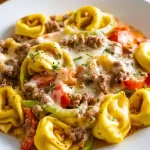 Looking for an easy dinner idea that brings comfort and bold flavor to the table? This Crock Pot Cheesesteak Tortellini is the ultimate one-pot meal that transforms the classic Philly cheesesteak into a creamy, cheesy pasta sensation. Packed with tender cheese tortellini, seasoned ground beef, sweet bell peppers, onions, and gooey melted cheese, it’s a perfect blend of savory satisfaction and weeknight convenience. Whether you need a quick family meal, new dinner ideas, or hearty food ideas for guests, this recipe checks every box for easy recipe lovers and comfort food fans.