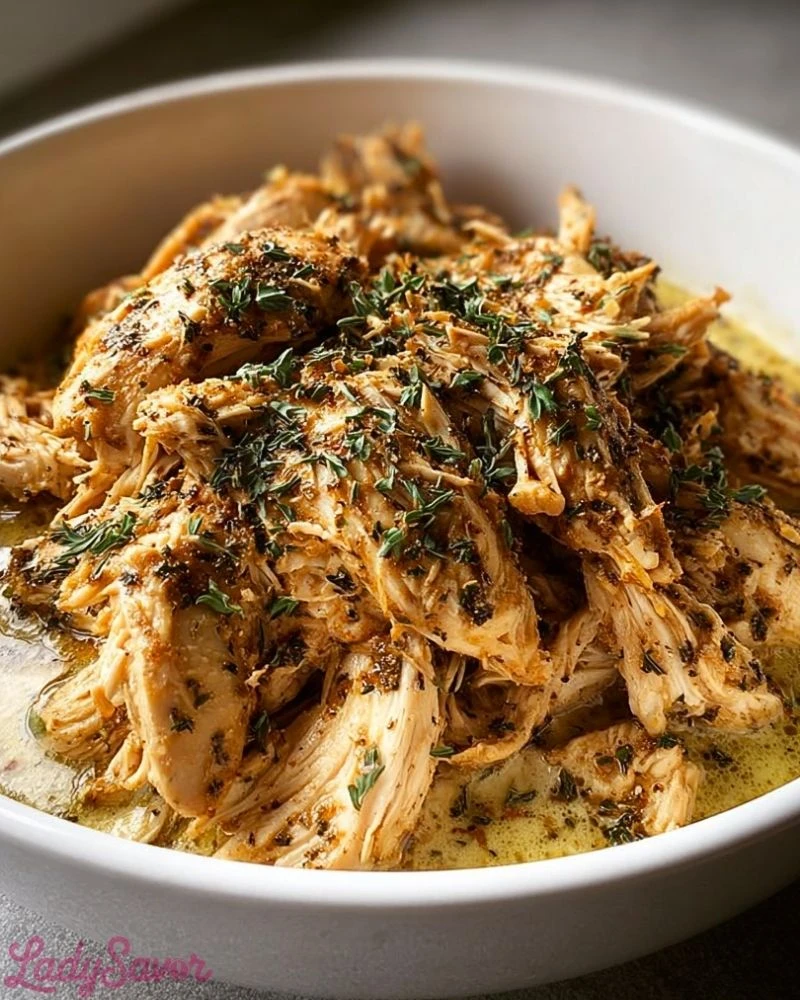 Start with boneless, skinless chicken breasts or thighs depending on your texture preference — thighs tend to be more tender and flavorful. Be generous with your herbs and spices; since the chicken will be cooking for hours, bold seasoning is key to avoid blandness. If you’re using cream cheese or heavy cream, let them soften at room temperature before mixing into the pot to prevent curdling. For an even creamier result, stir in the dairy halfway through cooking rather than at the beginning. Always shred the chicken in the sauce to allow it to absorb maximum flavor.