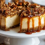 What I love most about this cheesecake is that it brings together two classics—New York-style cheesecake and Southern pecan pie—into one glorious bite. The crust is buttery and crisp, the filling is lusciously smooth, and that glossy pecan topping gives each slice a satisfying crunch. Whether you’re planning a Thanksgiving feast or just craving something special, this dessert is guaranteed to impress.