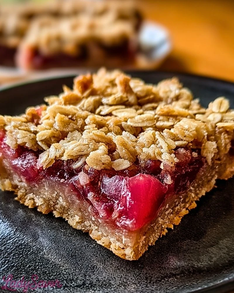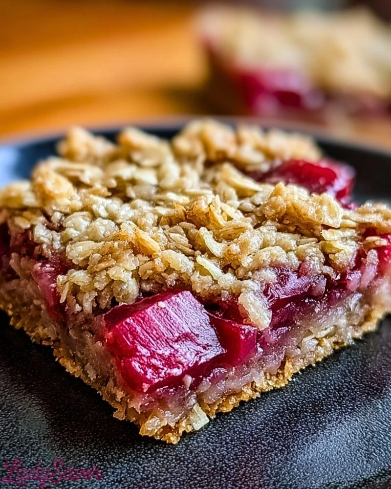 These bars strike a beautiful harmony between sweet and tart flavors, making them incredibly satisfying without being overly rich. The oatmeal crumble adds a comforting texture, while the rhubarb filling brings a bright, tangy contrast.