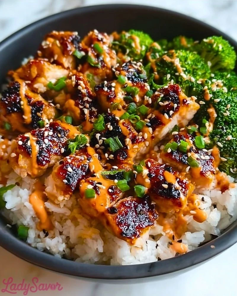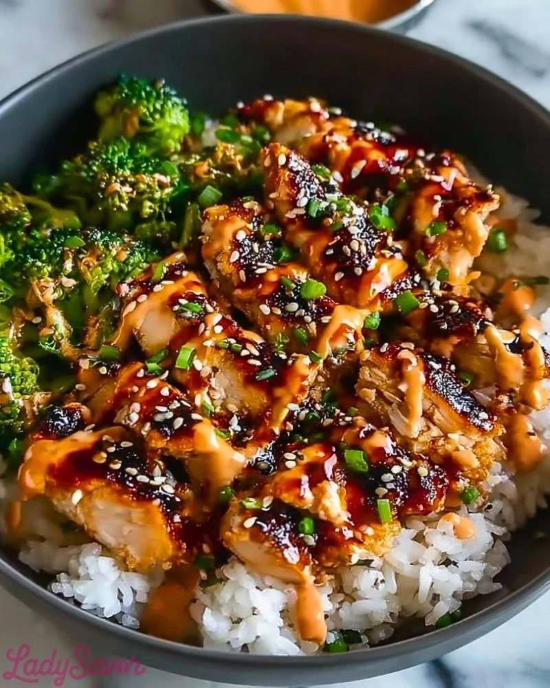 The beauty of this bowl is in the contrast of textures and bold flavors. The sticky glaze caramelizes beautifully on the chicken, creating a glossy coating packed with umami. Paired with tender-crisp broccoli and a creamy drizzle of spicy mayo, every bite is an explosion of balance — warm, rich, tangy, and just a little heat. It’s the kind of meal that makes you want to sit down and savor every spoonful.